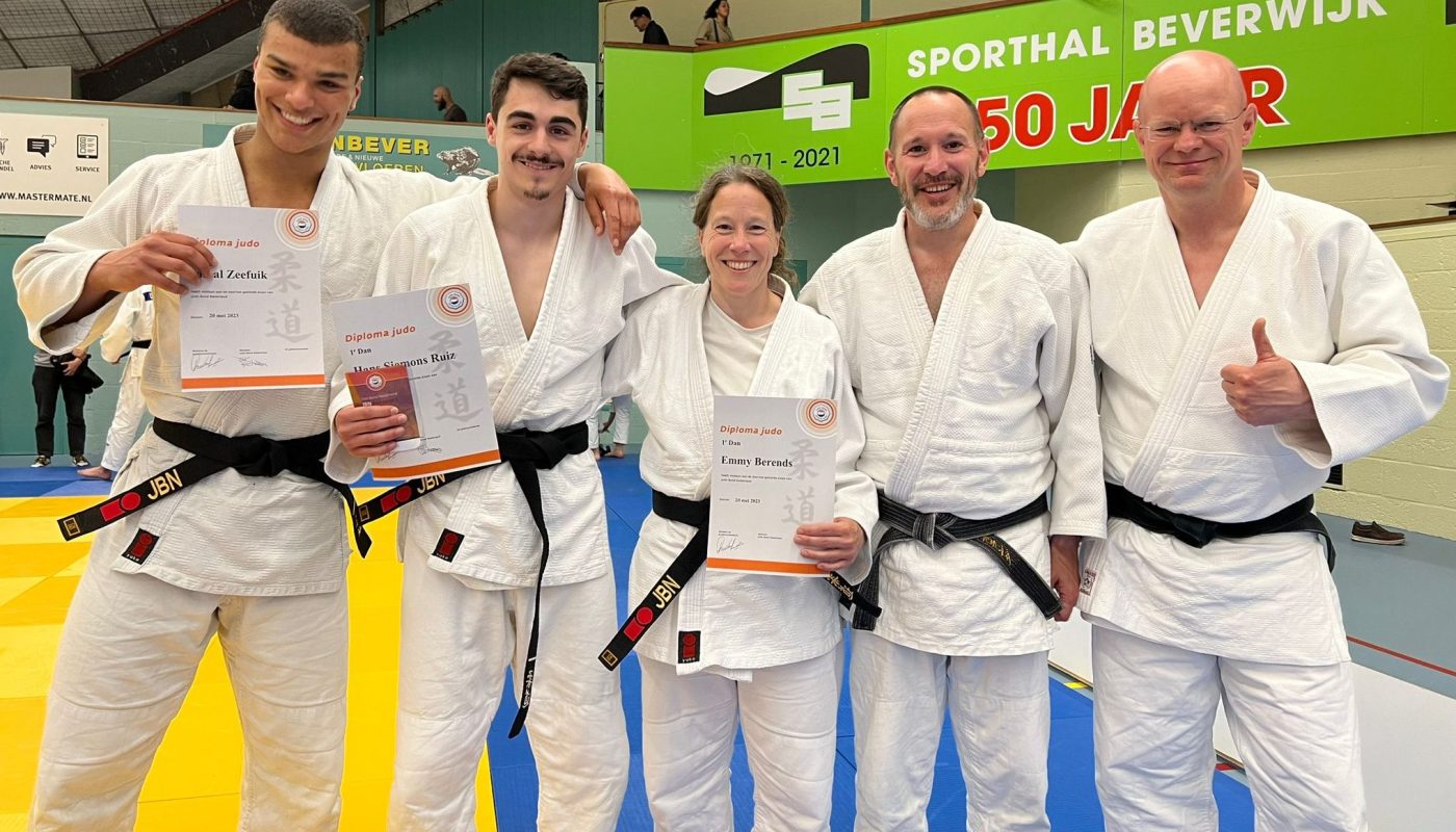 Beide heren waren met vlag en wimpel geslaagd voor hun 1e Dan (zwarte band). Gefeliciteerd!!